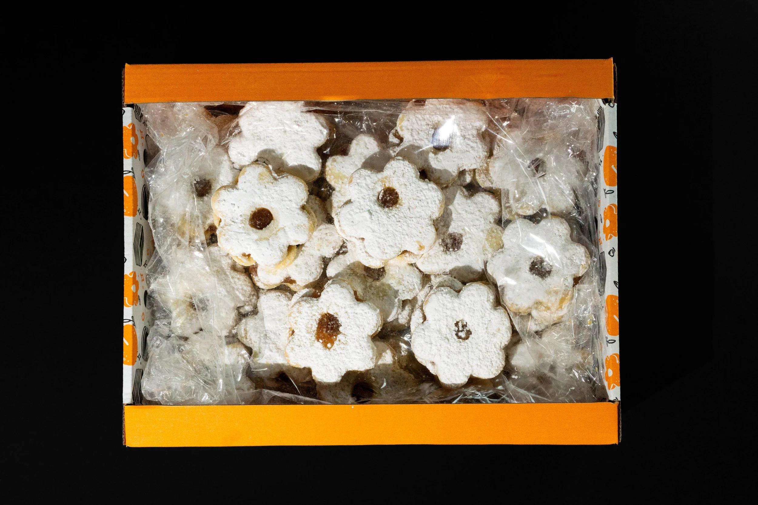 Cutia generoasă de 1,8 kg de linzere cu gem. Aceste delicatese fine și delicate sunt o adevărată încântare pentru simțuri. Fiecare mușcătură dezvăluie un echilibru perfect între crocant și prospețime, satisfăcându-vă poftele cele mai dulci.